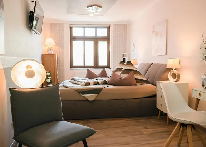 Deze accommodatie is op enkele minuten rijden van het Lutherhuis te vinden. Een wandeling van 5 minuten brengt u naar het centrum van Eisenach.