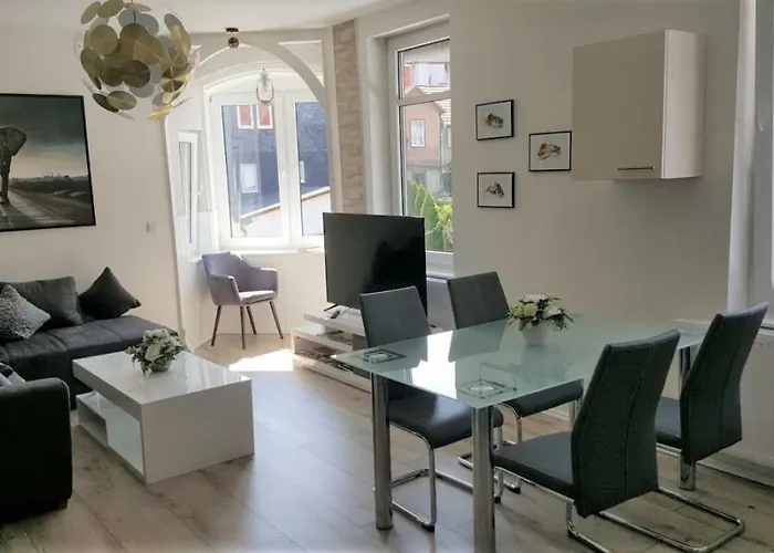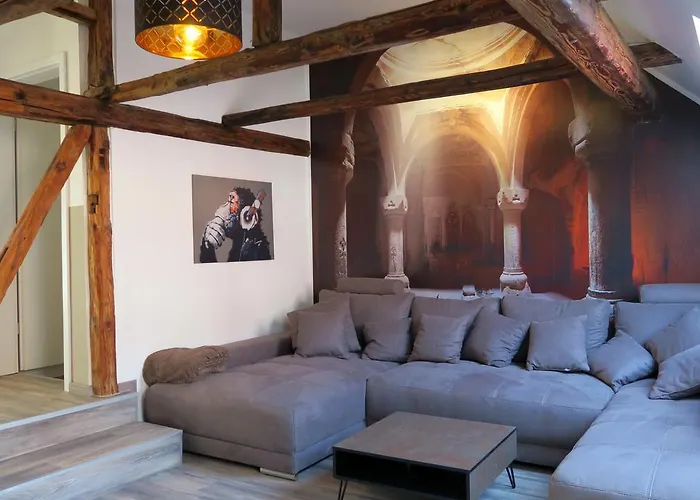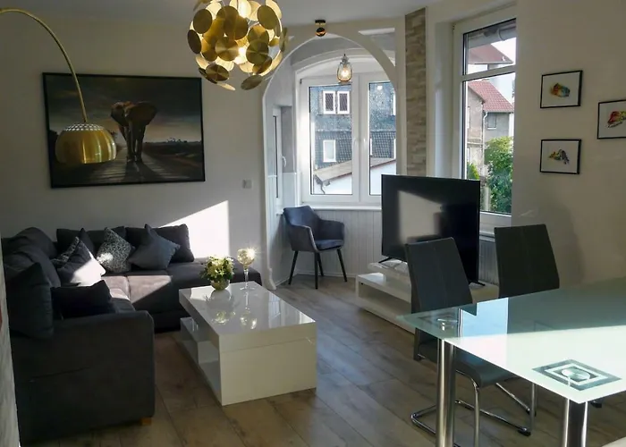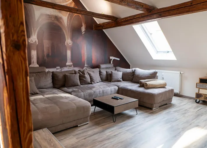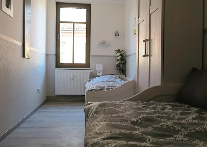 Ferienwohnung "Eisenach Stadtmitte" appartementen hebben uitzicht over de stad en liggen slechts 450 meter van de Doppelkurbel-Kniehebel-Tiefziehpresse. Het Landestheater Eisenach ligt op slechts 450 meter hier vandaan en de Wartburg is op ongeveer 25 minuten wandelafstand van dit appartement.